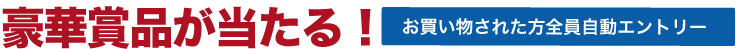 | ●7月1日より8月31日までの間にホームページ上でご購入のあったお客様は自動的にエントリーされます。 ●プレゼントの当選発表はホームページ上にて9月中旬に行います。 ●当選したお客様にはメールでご連絡いたします。 ●当選した商品の発送先は自由に選べます。 ●お電話でのお問い合わせはお受けいたしかねますのでご了承ください。 |